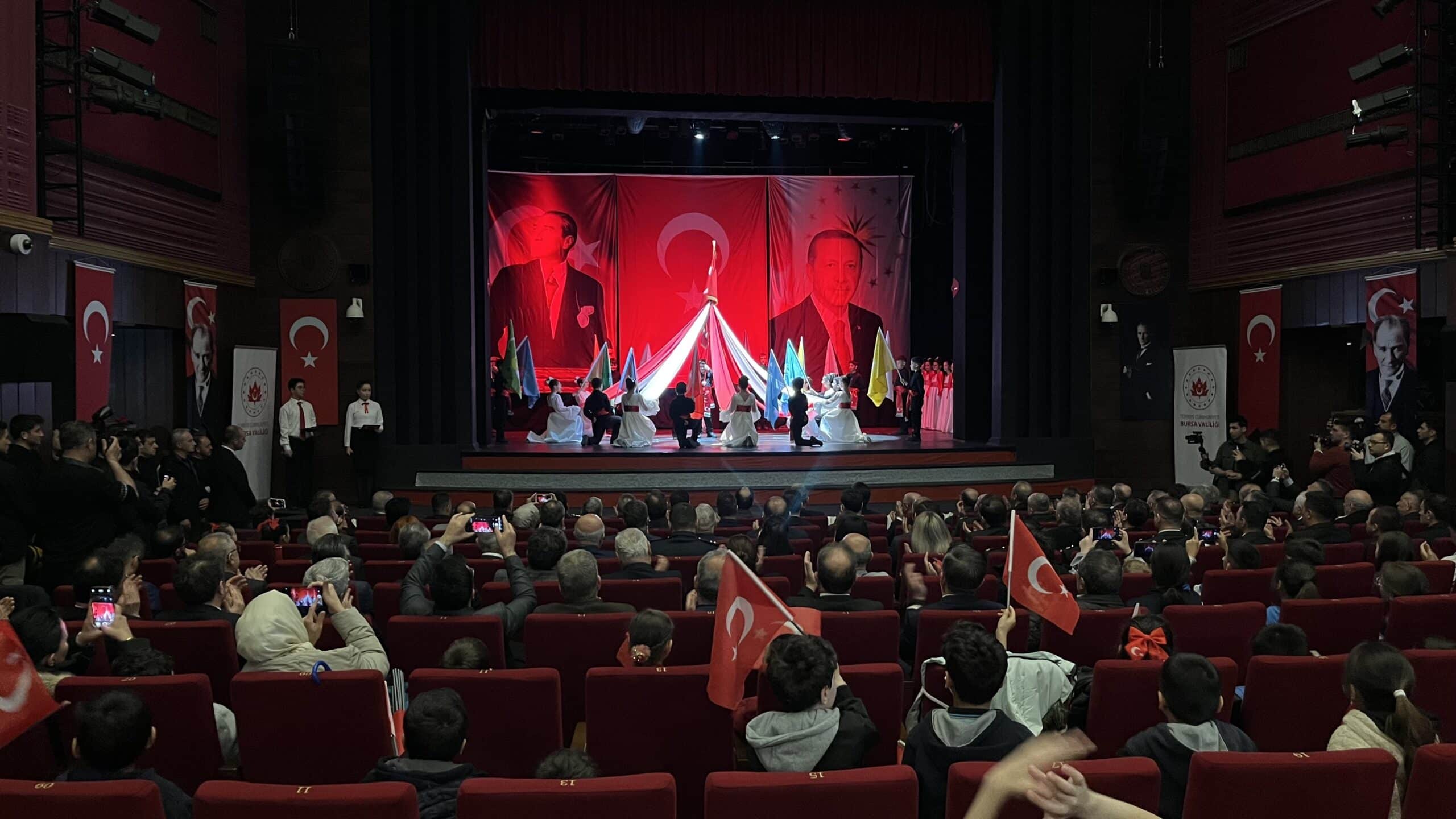 Bursa Valiliği tarafından 23 Nisan Ulusal Egemenlik ve Çocuk Bayramı, büyük bir coşkuyla okullardan gelen öğrencilerin katılımıyla Tayyare Kültür Merkezi’nde kutlandı. Salonu dolduran öğrencilerin hep bir ağızdan söylediği İstiklal Marşı’nın ardından bir öğrencinin okuduğu şiir büyük beğeni topladı. Bursa İl Milli Eğitim Müdürü Gürhan Çokgezer ise yaptığı konuşmada, şu cümlelere yer verdi;