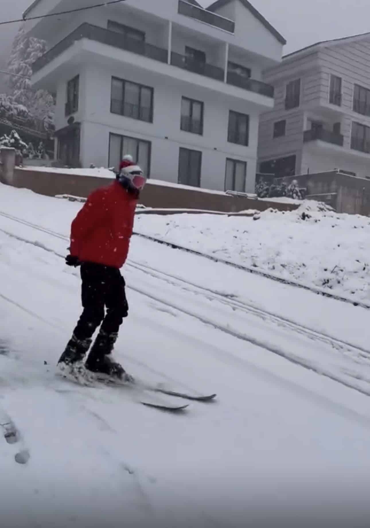 Merkez Yıldırım ilçesi Piremir Mahallesi’nde sabah saatlerinde etkili olan kar yağışı sonrası beyaza bürünen yollarda kayak takımıyla kayan vatandaş, çevredeki vatandaşların ilgisini çekti.