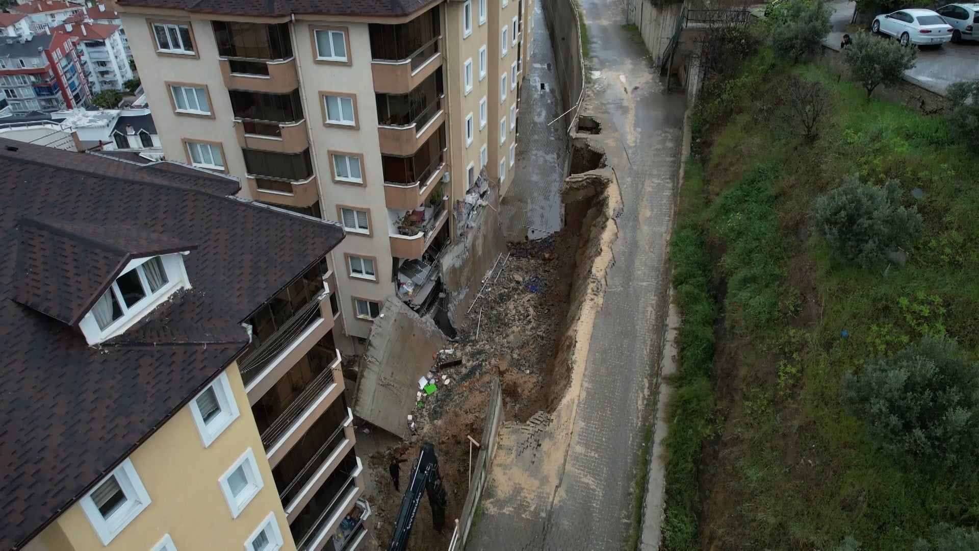 Bursa’nın Mudanya ilçesi Halitpaşa Mahallesi’nde yer alan Tahtalı Park Evleri’nde meydana gelen istinat duvarı çökmesi, alınan son bilgilere göre daha geniş bir alanı etkiledi. Saat 13.00 sıralarında büyük bir gürültüyle devrilen beton duvar, site sakinlerine deprem kabusu yaşattı.