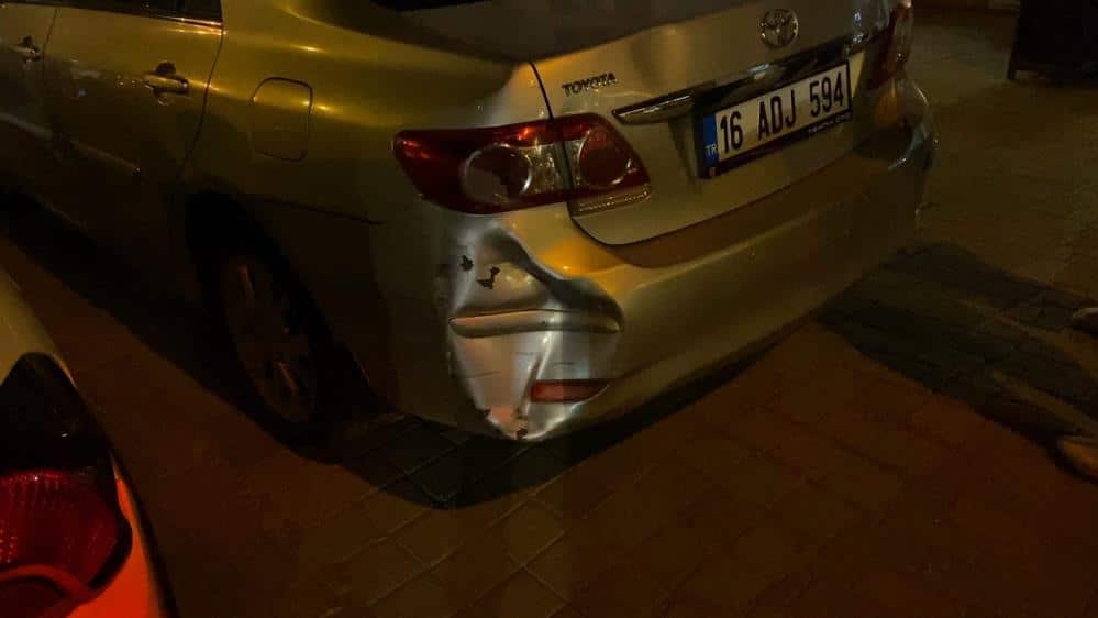 Kovalamaca sırasında motosiklet sürücüsü park halindeki 16 ADJ 594 plakalı otomobile de çarptı. 15 kilometrelik nefes kesen kovalamaca sonucu sürücü yakalandı.
