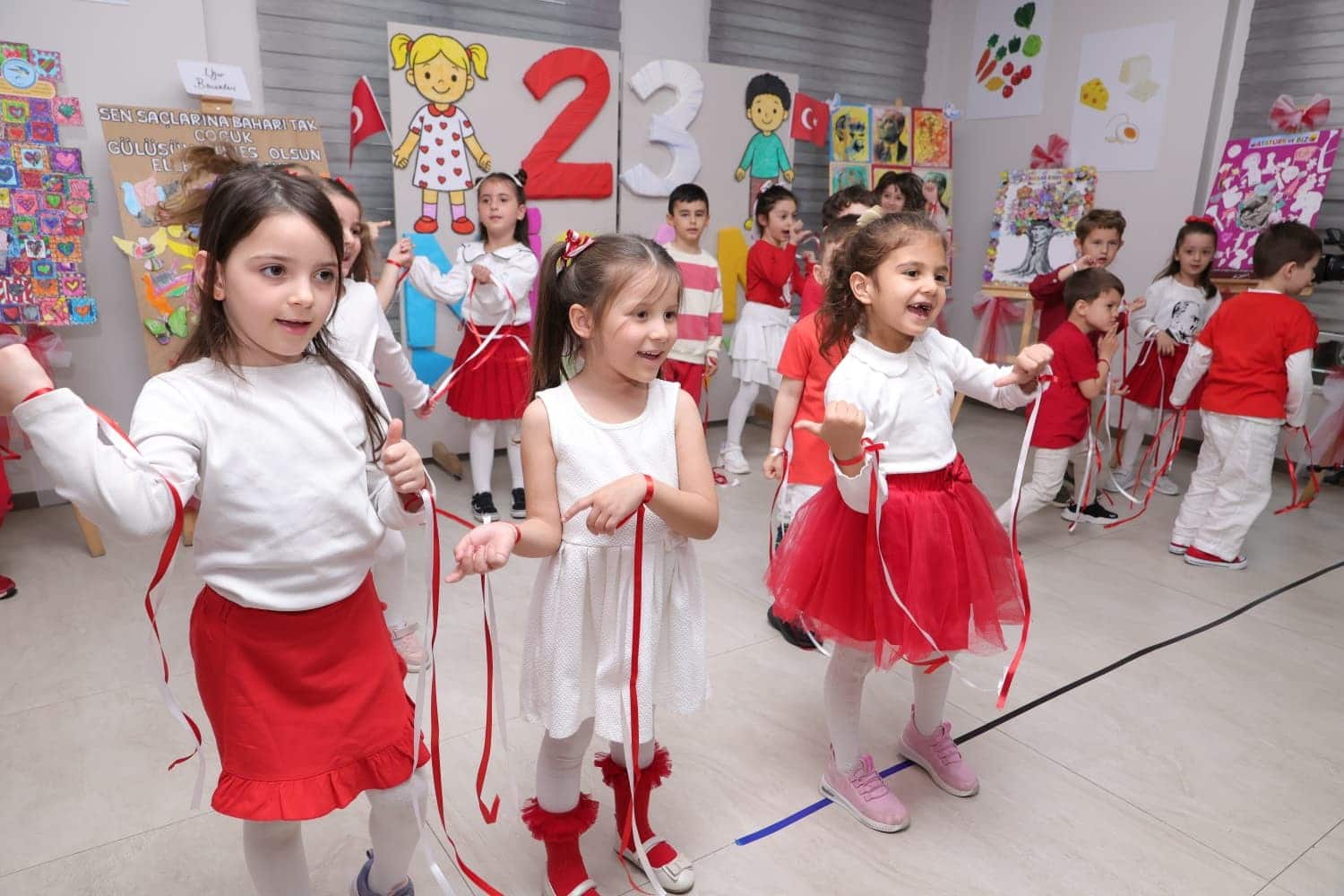 Öğretmenleri eşliğinde sahneye çıkan öğrenciler, hazırladıkları renkli danslar, şiirler ve gösterilerle izleyenlere unutulmaz anlar yaşattı. Ailelerin ve davetlilerin büyük ilgi gösterdiği programda, çocukların sahnedeki heyecanı ise ortama neşe kattı.