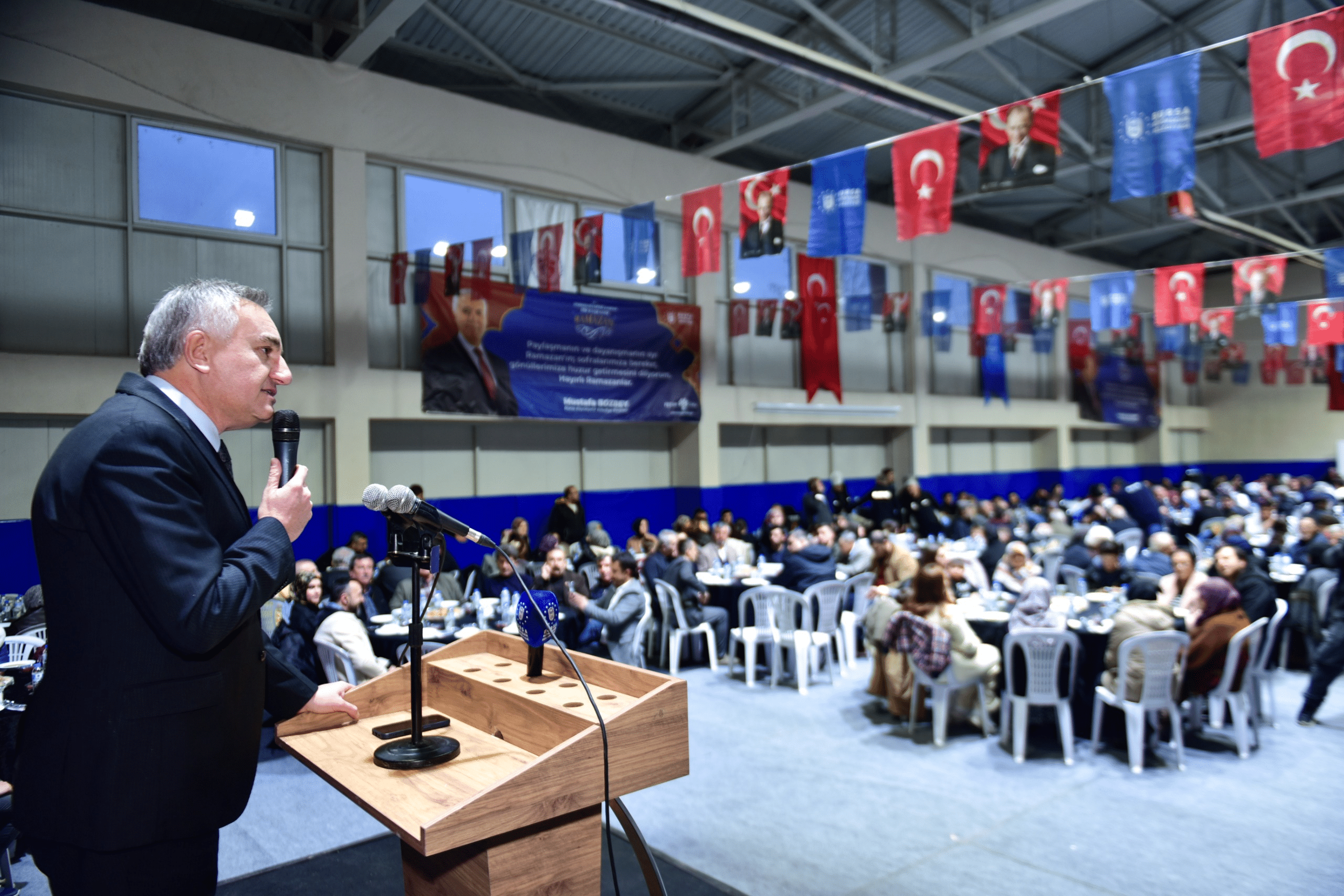 Bursa Büyükşehir Belediye Başkanı Mustafa Bozbey’in selamlarını ileterek konuşmasına başlayan Başkanvekili Mustafa Orkun Gazioğlu, Harmancık ilçesinde aynı sofrada buluşmaktan büyük mutluluk duyduklarını ifade etti. Ramazan’ın paylaşmanın, dayanışmanın ve gönülden gönüle olmanın ayı olduğunu vurgulayan Gazioğlu, aynı ekmeği bölüşmenin ve aynı duaya amin demenin kardeşlik duygularını güçlendirmek olduğunu anlattı. Bursa Büyükşehir Belediyesi’nin kentin her köşesinde olduğu gibi Harmancık’ta da yüzleri güldürmek için çalıştığını söyleyen Gazioğlu, tüm vatandaşlara hayırlı Ramazanlar diledi.