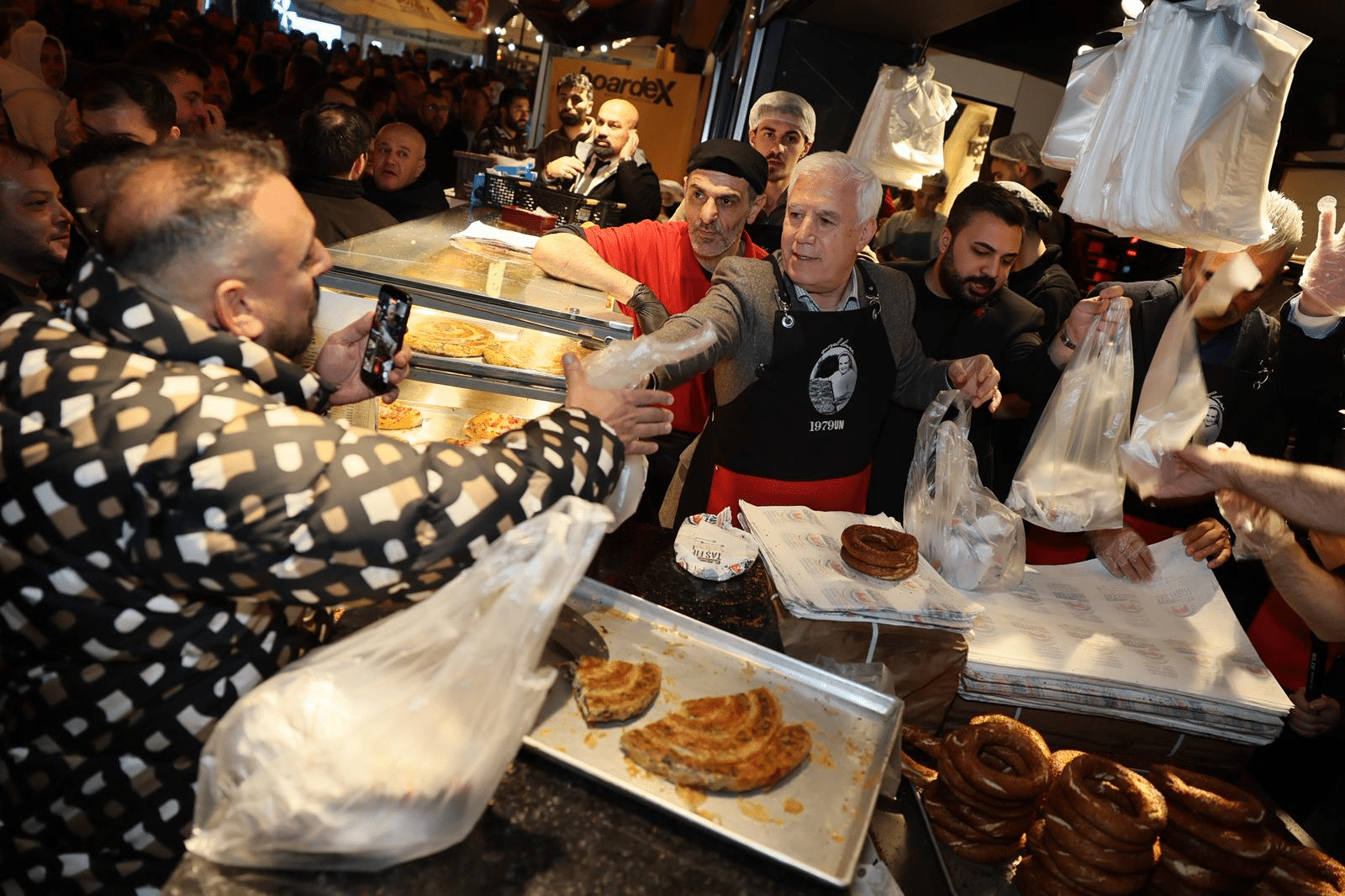 Bursa Büyükşehir Belediye Başkanı Mustafa Bozbey’in sosyal medyadan yaptığı “Sahurda Abdal Meydanı’nda Buluşuyoruz” paylaşımıyla yüzlerce Bursalı Abdal Meydanı’ndaki tarihi fırının önüne geldi. Gençler tarafından meşalelerle karşılanan Başkan Mustafa Bozbey, vatandaşlarla sohbet edip bol bol hatıra fotoğrafı çektirdi. Daha sonra önlüğü giyerek tezgahın başına geçen Başkan Bozbey, meydanı dolduranlara tahanlı pide, börek ve simit ikram etti.